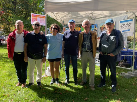Le Président de l'Atscaf63 M.BRIDAY, la nouvelle permanente (facile à repérer au milieu de ce harem de bénévoles !) B.GUARNERI et les bénévoles de différentes sections se sont relayés en force toute la journée pour vous renseigner sur nos différentes activités et nos nouveautés. Nous n'avons pas attrapé de coups de soleil mais de nouvelles adhérentes et de nouveaux adhérents. Nous vous remercions pour vos sourires, vos échanges et vos futurs bulletins d'adhésion/renouvellement. Pour toute question, n'hésitez pas à contacter notre permanente.
