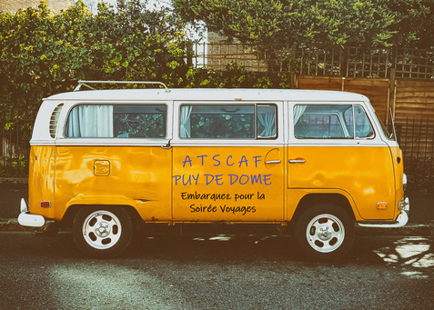 La commission des voyages de l'ATSCAF 63 vous invite à participer à sa traditionnelle SOIRÉE DES VOYAGES qui aura lieu le jeudi 27 novembre 2025 à la salle des fêtes de CÉBAZAT, au 46/48 route de Gerzat.