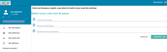 Cela vous proposera ensuite comme sur l'image ci-dessous le changement de mot de passe. Ne faites donc pas "mot de passe oublié" avant d'avoir tenté cette procédure.